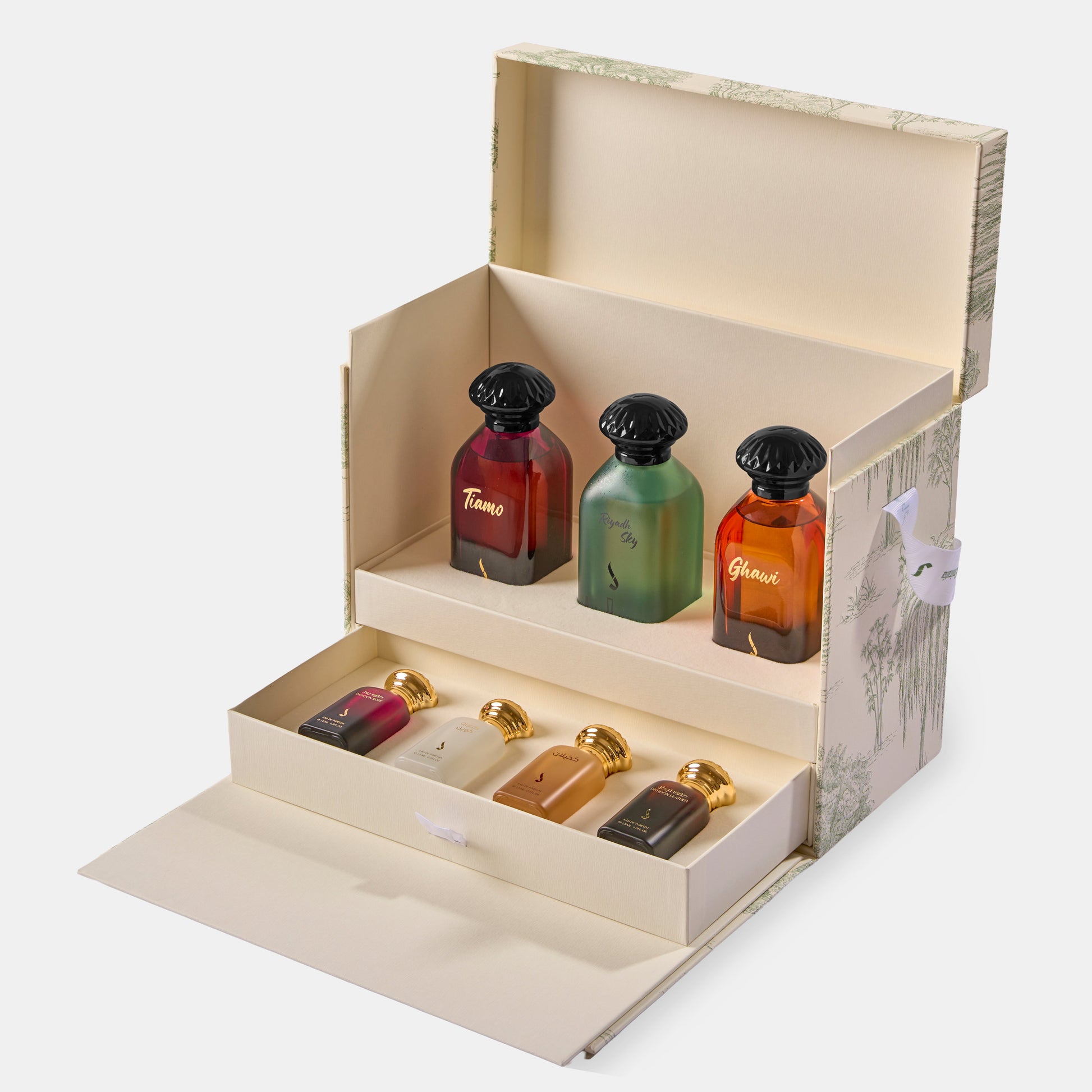 عشر سنوات من الإبداع والتميّز خطّت فيها دخون الإماراتية اسمها في ذاكرة العطر. نحتفل بهذه الرحلة بإصدار خاص «عِشرة كلها طيب»، طقم فاخر يجسّد محطات من المسيرة ويجمع بين الأصالة والفخامة في كل تفصيل.